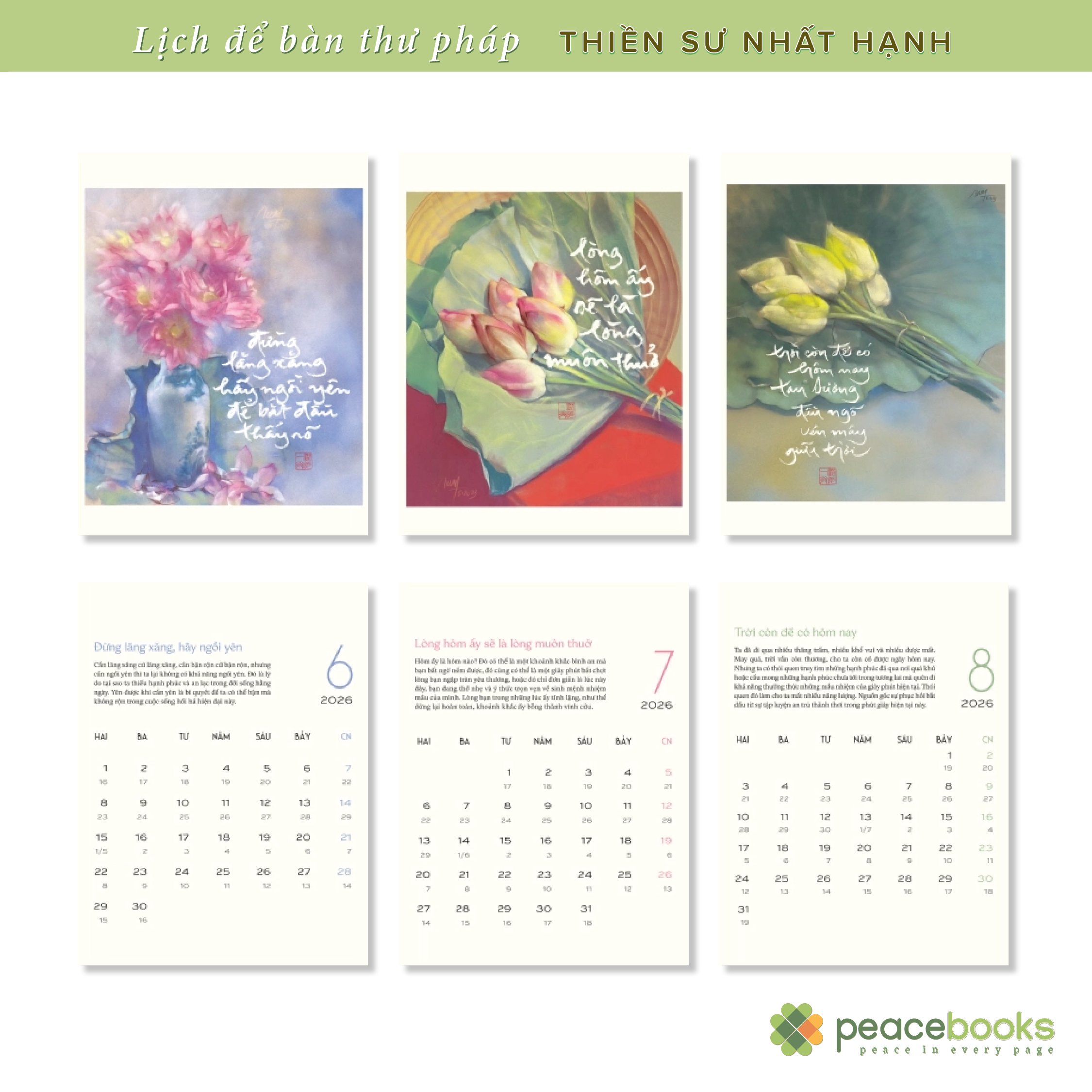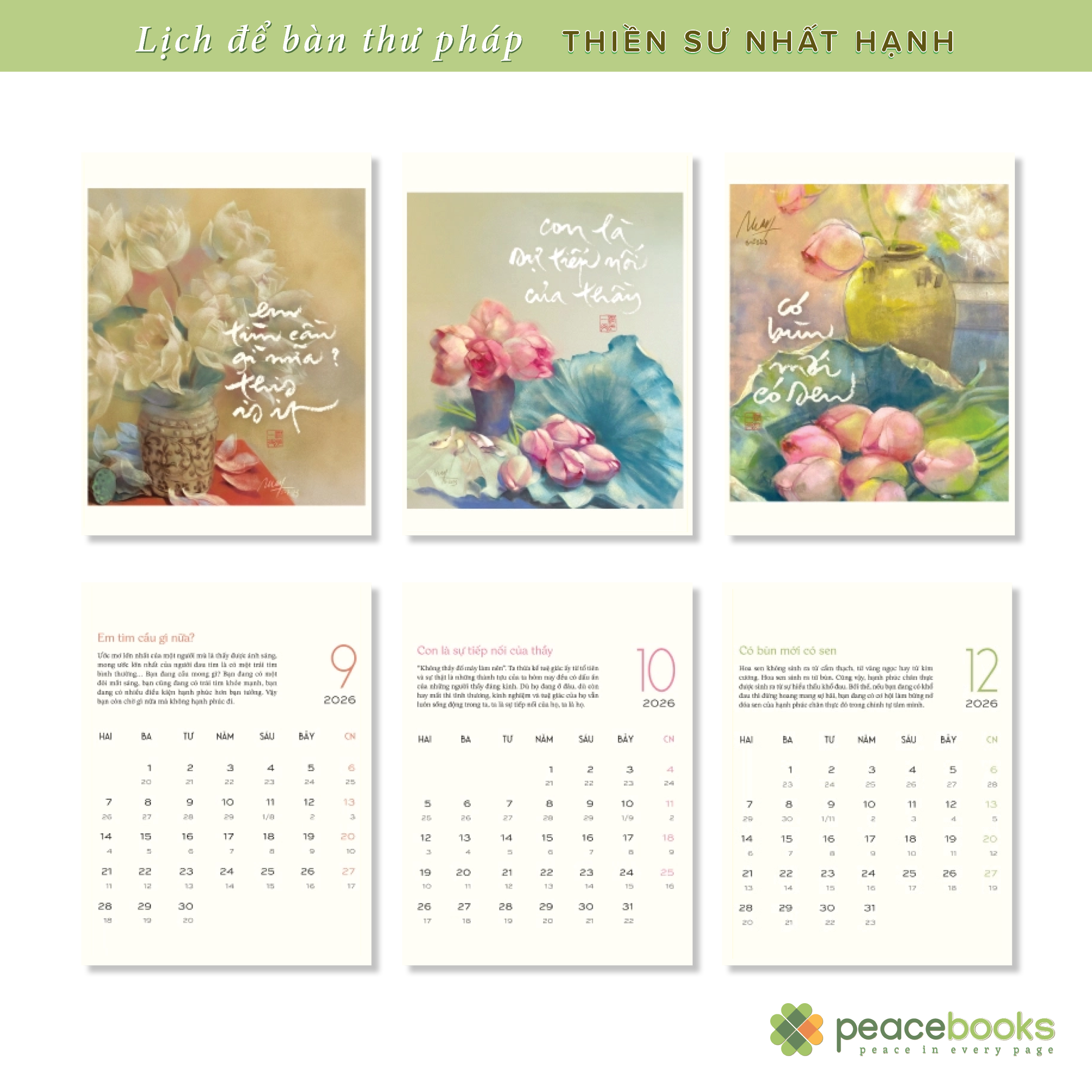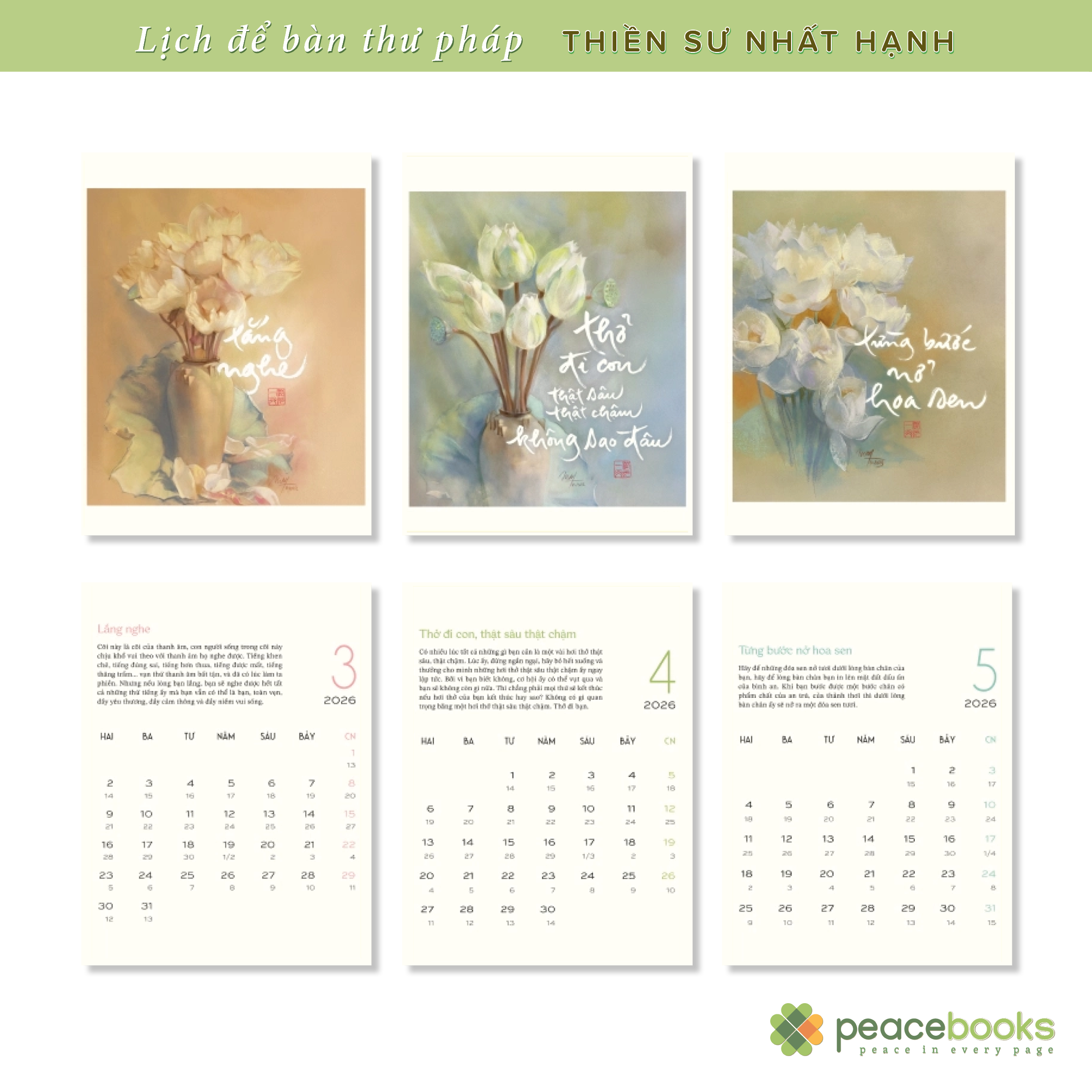 (Lịch để bàn 12 tháng Thư pháp của Thiền sư Nhất Hạnh do Peacebooks phân phối)