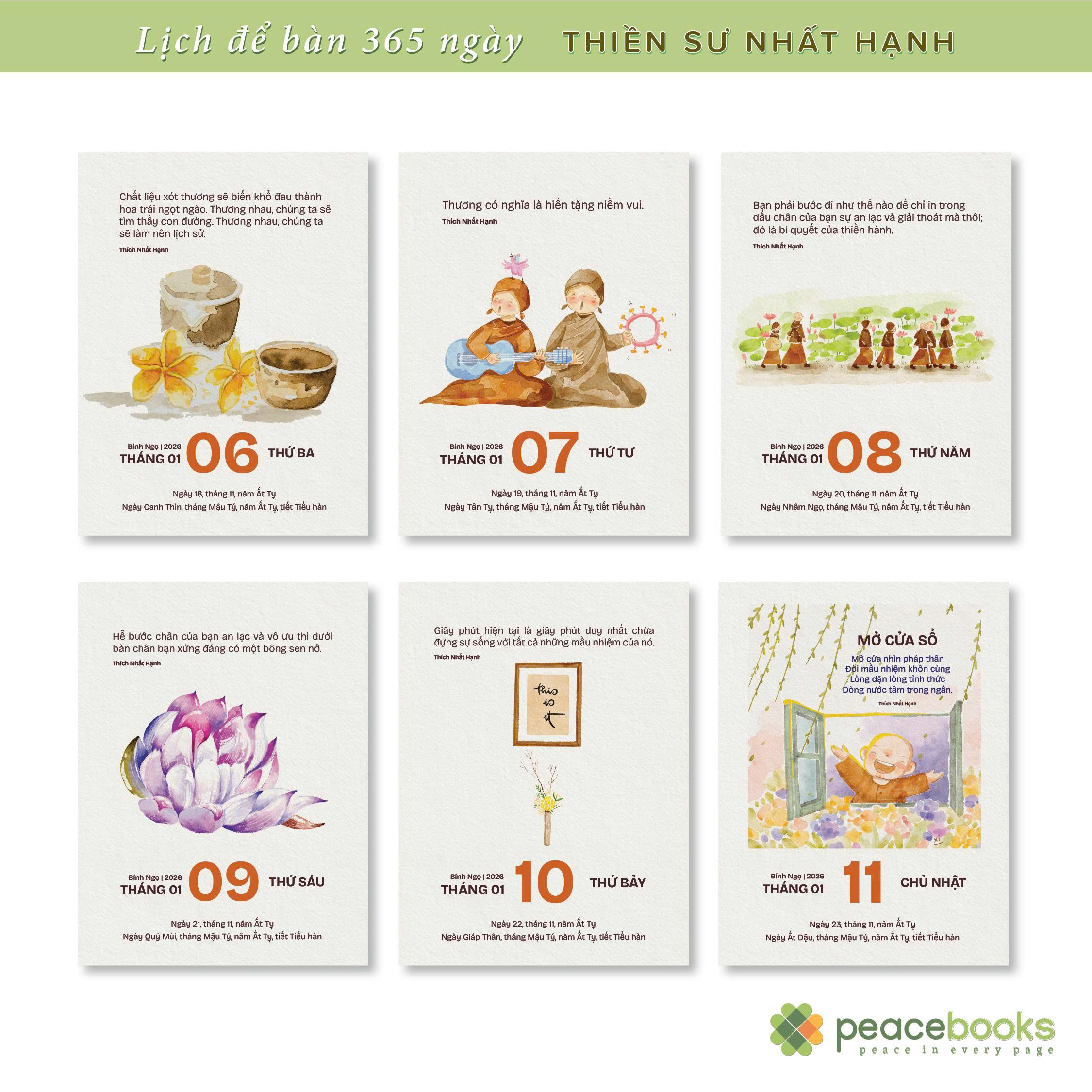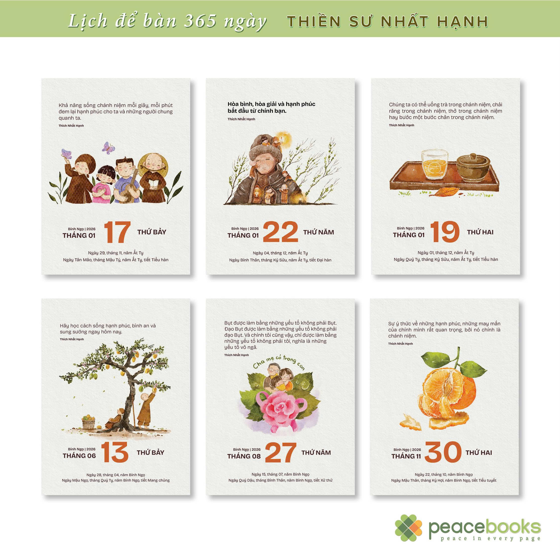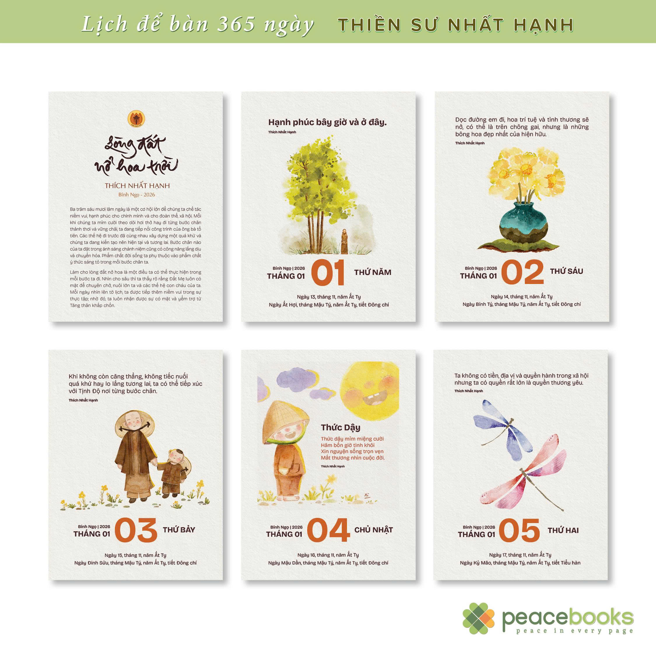 (Lịch để bàn 365 ngày Thư pháp của Thiền sư Nhất Hạnh do Peacebooks phân phối)